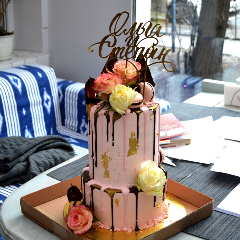 Декорирую торты в основном кремом и шоколадом, немного карамели, иногда живые цветы. Люблю использовать потёки из ганаша и пластичный шоколад.